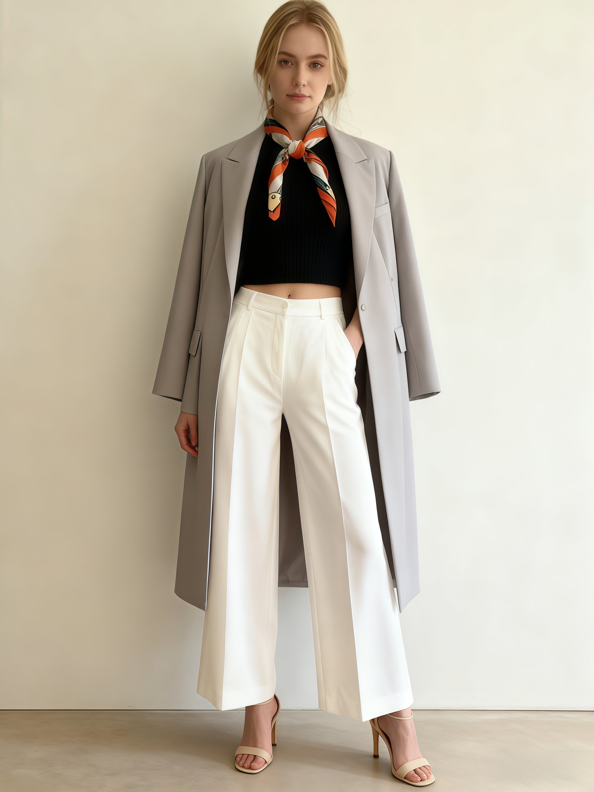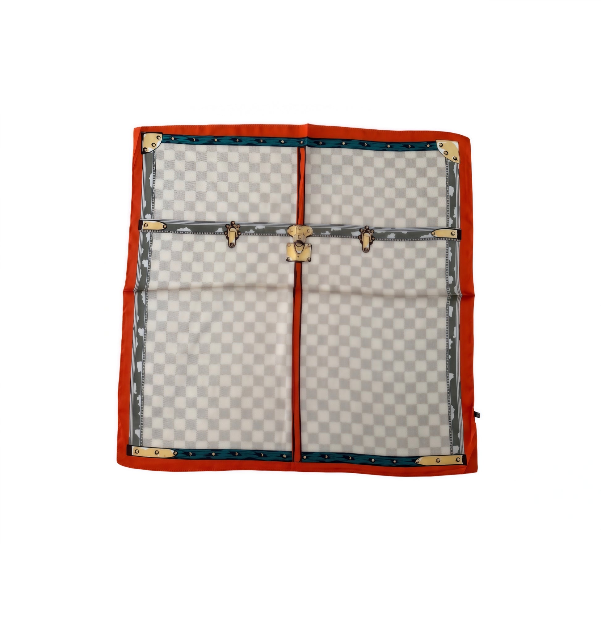 The Checker & Trunk Silhouette Scarf features ingeniously spliced gray-white checkers, orange-red borders, and metal fasteners, like a retro painting. Soft to the touch, when tied around the neck, it brings the elegance of vintage trunks to your outfit, making everyday looks a blend of retro art and modern style.