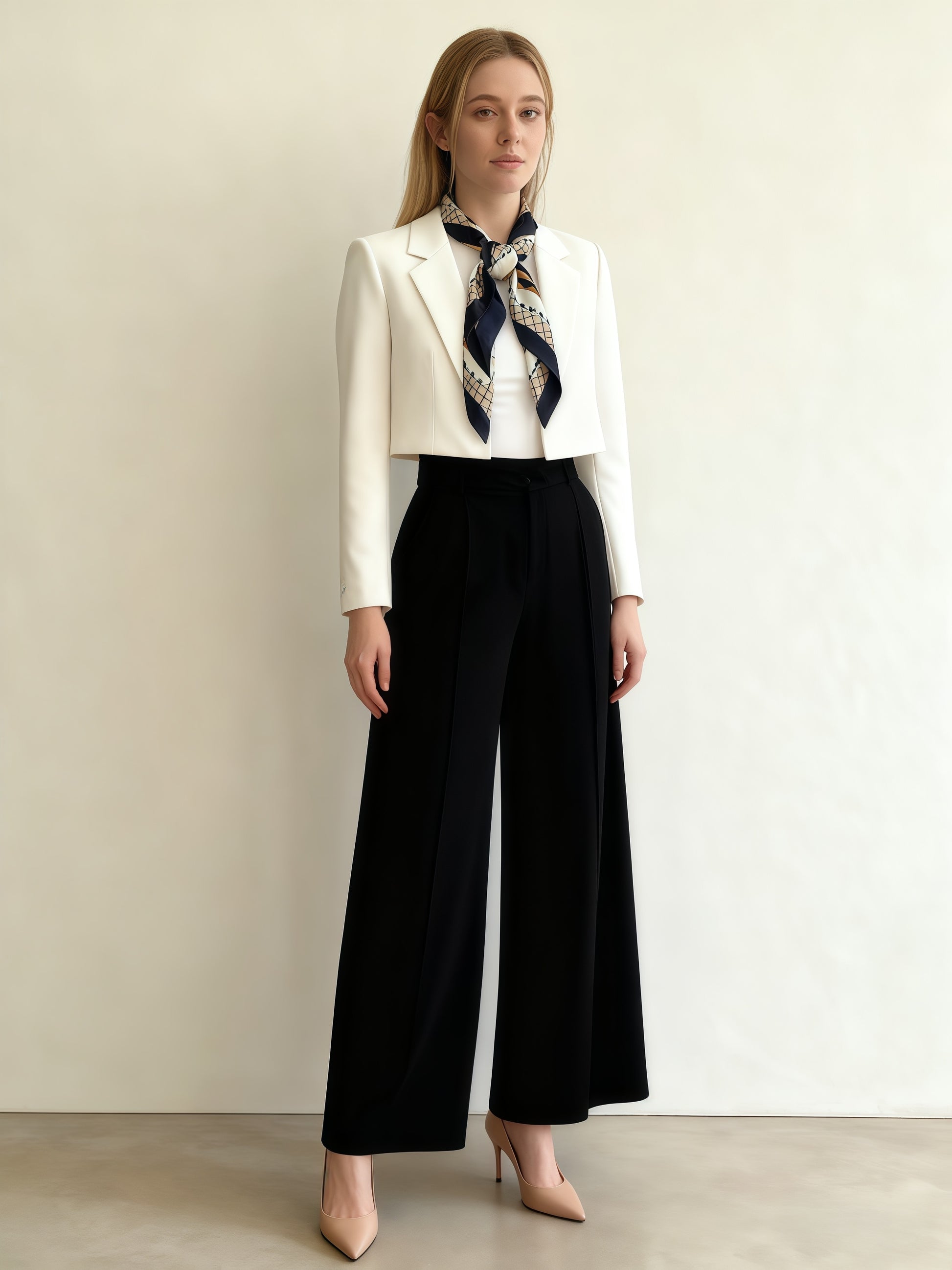 The Lattice Dawn Scarf is inspired by Oriental window lattices. It has warm orange, navy blue, and off-white grids, looking elegant. When tied around your neck, it brings the beauty of morning light to your outfit. It’s both vintage and modern, adding an Oriental touch to your daily style.