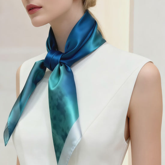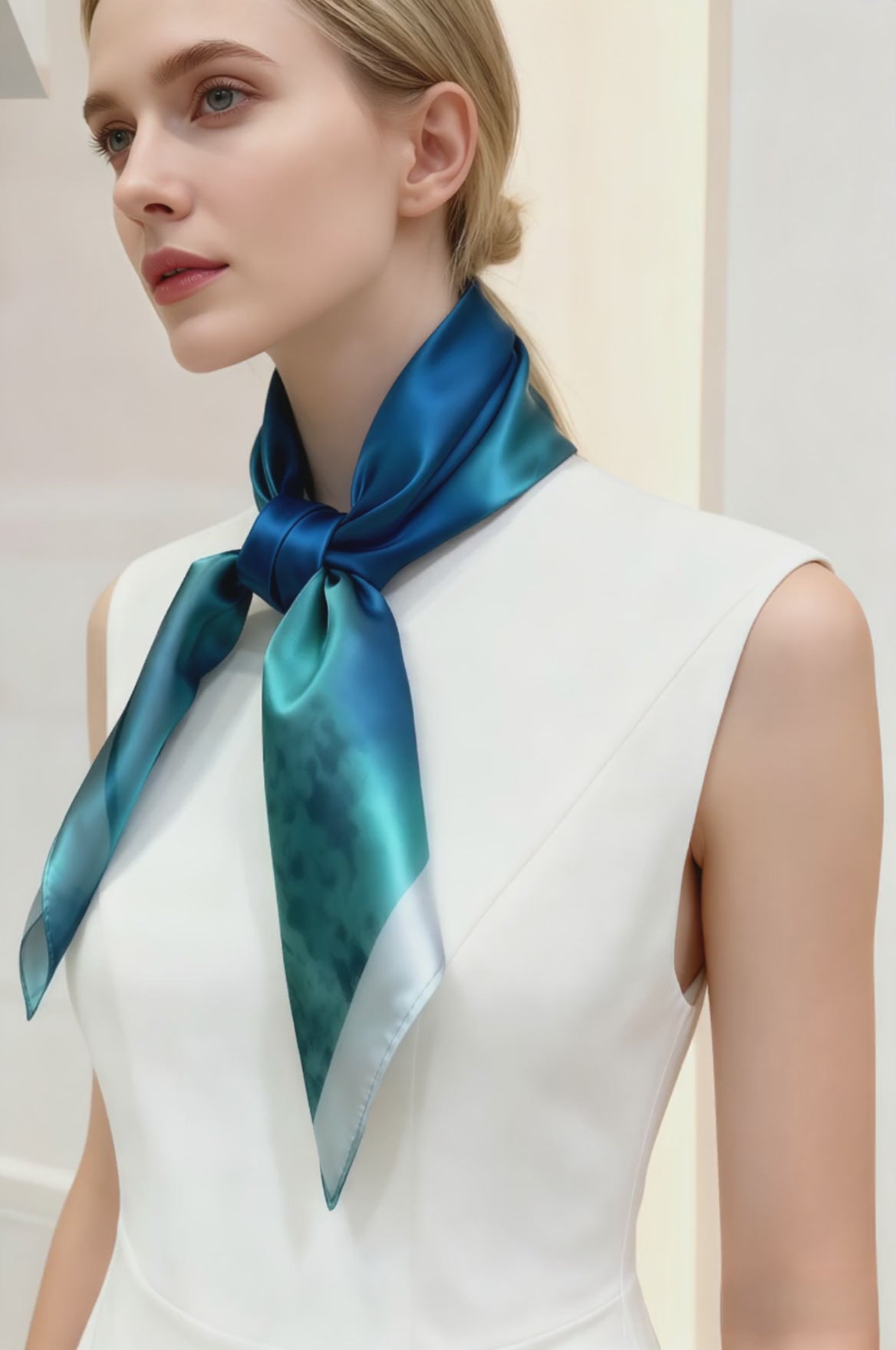The Sea Mist & Mountain Shadow Scarf uses blue - green gradients to show Oriental mountains and seas—waves look like peaks, clouds become shadows, and the white border is like morning mist. When tied around your neck, it brings the vast vibe of rivers and mountains to your outfit, giving everyday life a misty poetic feel.